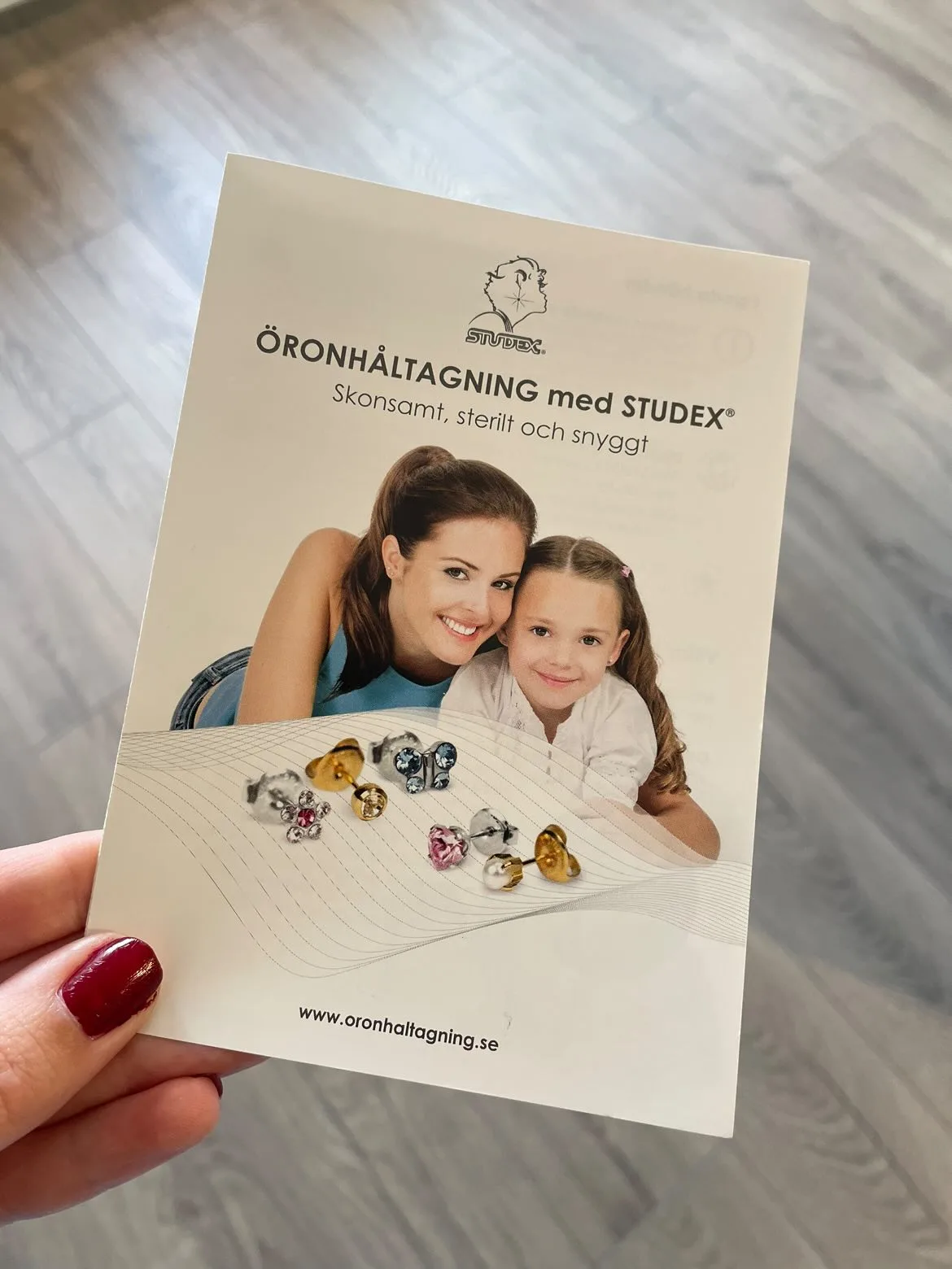 På Eksjö Guld använder vi STUDEX system och gör öronhåltagning med specialdesignade håltagningssmycken med kirurgisk stål, som kan bäras varje dag. Under håltagningsproceduren placeras både håltagningssmycket och låset optimalt och samtidigt. Örat vidrörs inte mer än nödvändigt. Hela proceduren är skonsam, snabb, säker och helt hygienisk.
