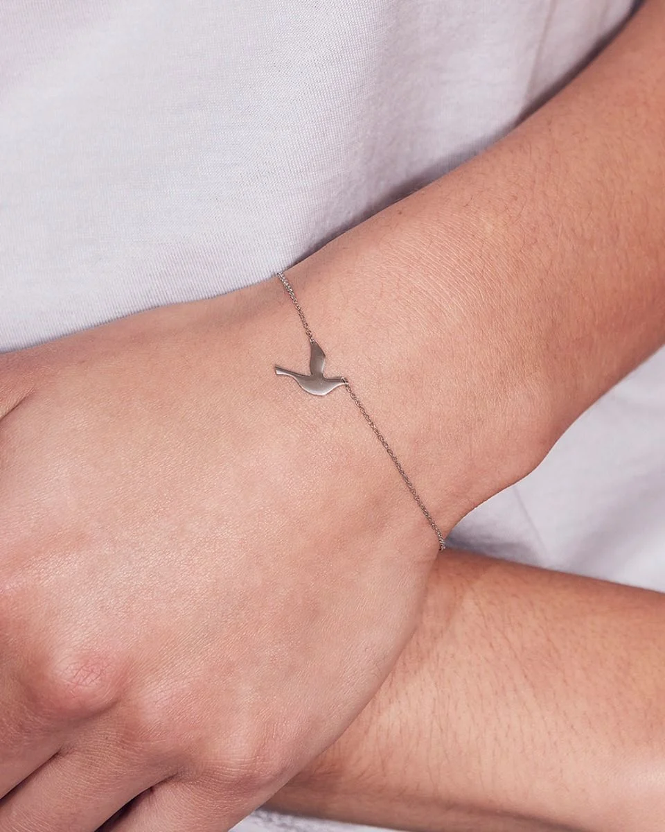 Serien Dove är en klassiker som funnits med länge och är mycket populär. Då duvan bland annat symboliserar kärlek och ömhet, är det en extra fin present. I Dove armband har duvan både en blank och en matt sida och är fäst med en nätt ankarkedja, ses här i blankt rostfritt stål.