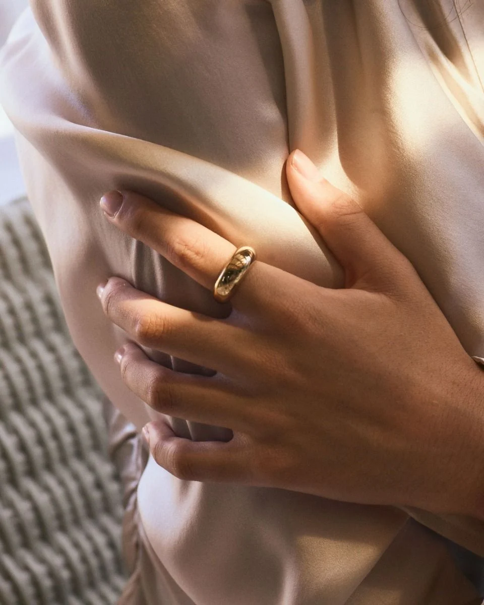 Inspirationen till serien Furo kommer från naturens cirkularitet, kretslopp, med sömlösa former som går in i varandra. Furo är så elegant i sin form och enkelhet att den passar att bäras till alla tillfällen. Furo ring har en rundad fin form som smalnar av runt fingret så att den är bekväm att bära, ses här i blank 14K guldplätering. Bär gärna Furo ring i både stål och guld tillsammans, mixa och matcha färgerna och bär även armbandet och fler delar ur serien Furo ihop. Namnet Furo betyder kärnan av flödet på japanska.