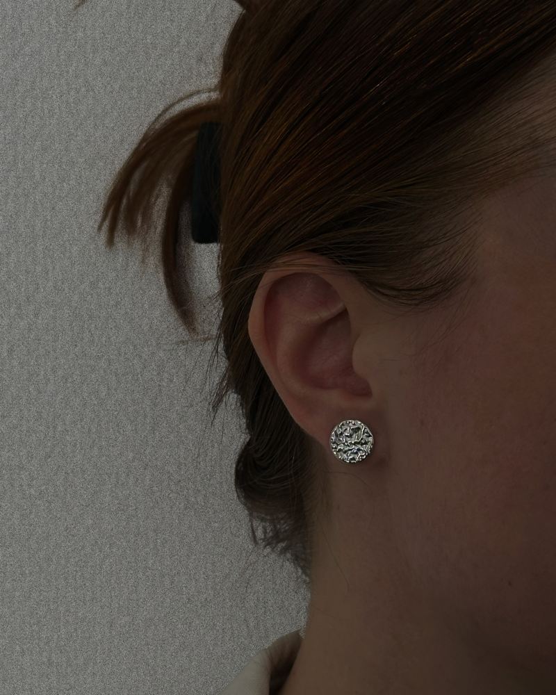 Lori örhängen är en stilren accessoar, lika vackra till en basic outfit som en mer uppklädd. Dessa studs i stål kommer utan tvekan att bli dina nya go-to örhängen med sin hamrade yta och unika design.