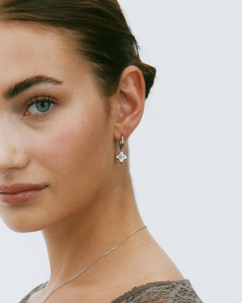 Scala bjuder på en stiliserad blomform i en tidlös design inspirerad av klassiskt kakel med fasetter som fångar ljuset. De mindre hoopsen, här i blankt rostfritt stål, glänser vackert i öronen. Hängena är avtagbara, för att skapa två örhängen i ett. Varför inte matcha med seriens fina ring?
