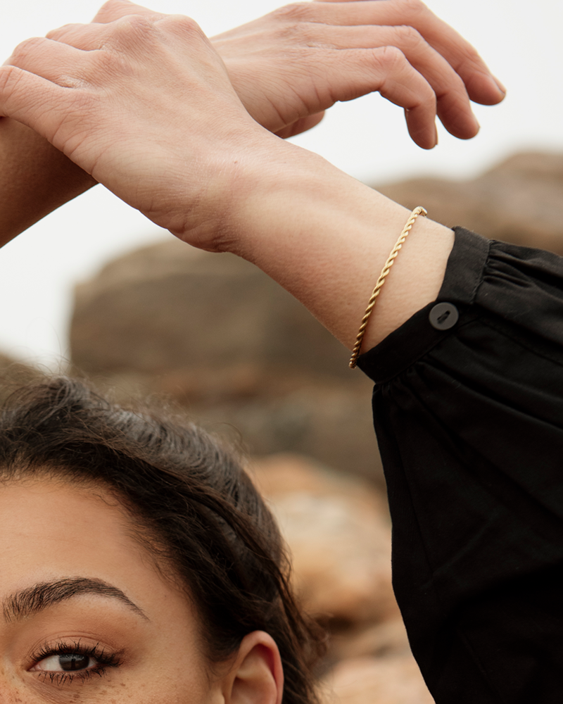 Tidlöst armband av en nätt cordellänk tillverkat i guldpläterat stål. Denna klassiska länk erbjuder en sofistikerad men ändå mångsidig stil och är det ultimata vardagssmycket. Bär det som det är eller matcha med andra accessoarer för en mer personlig touch.